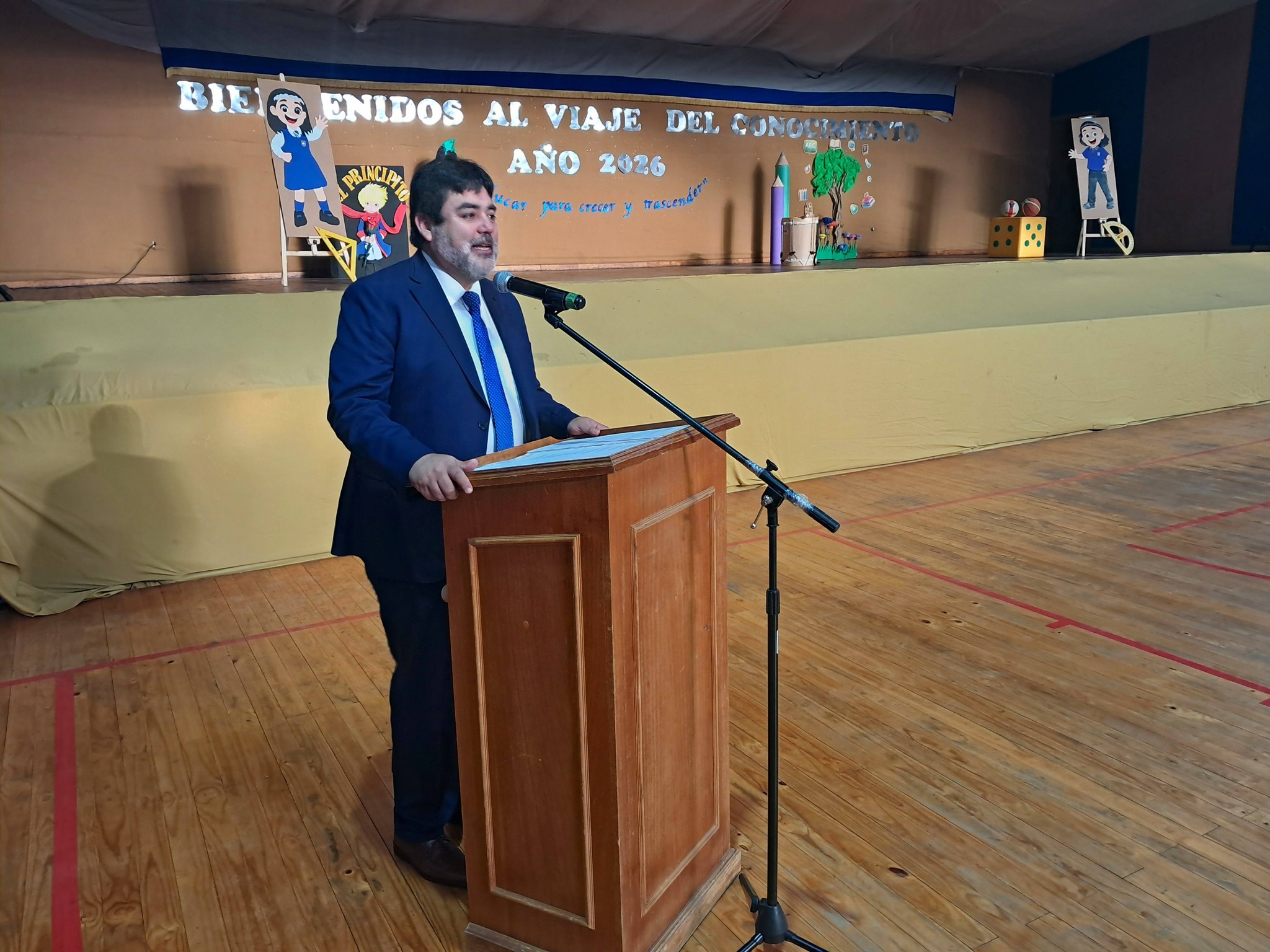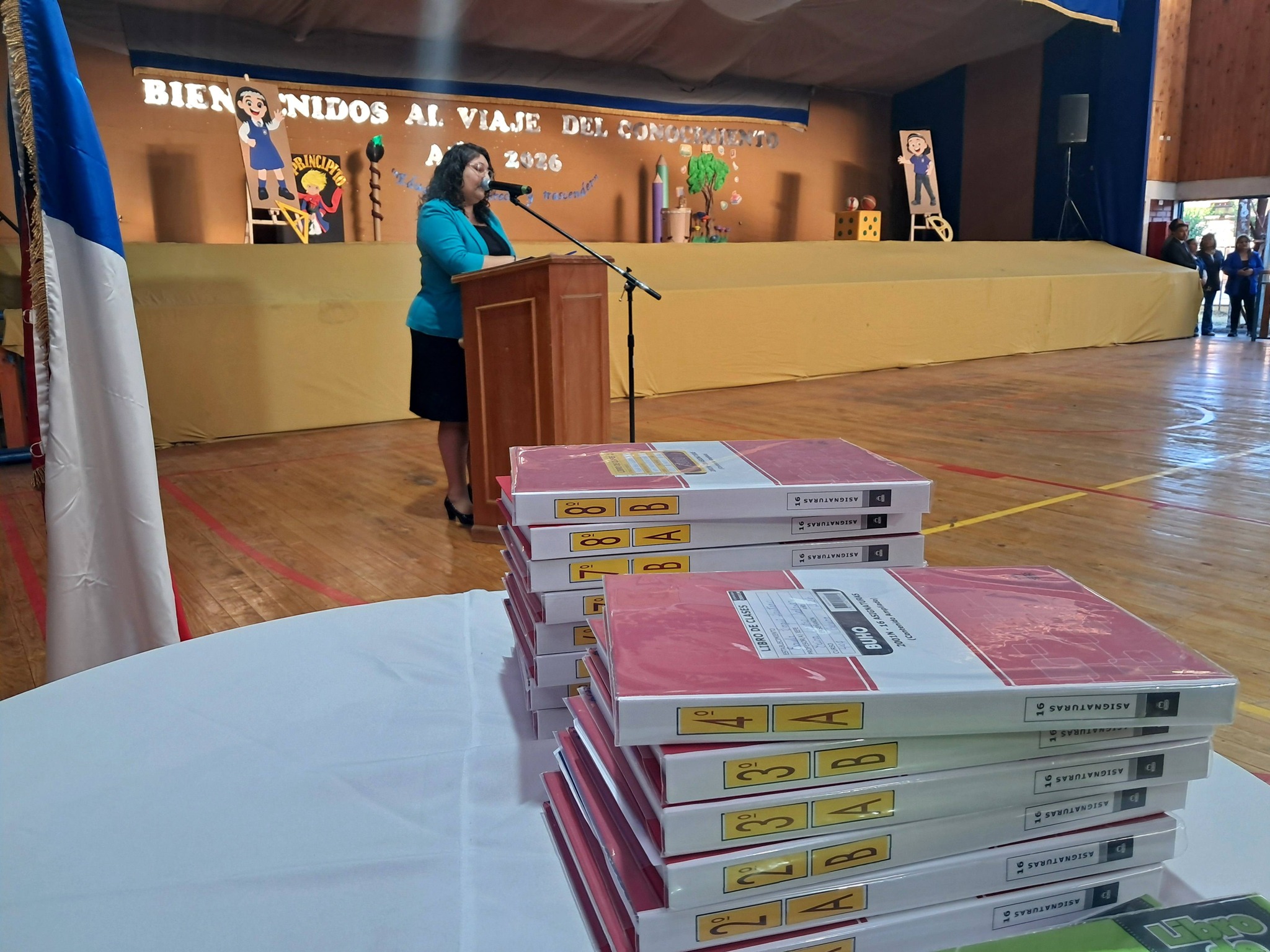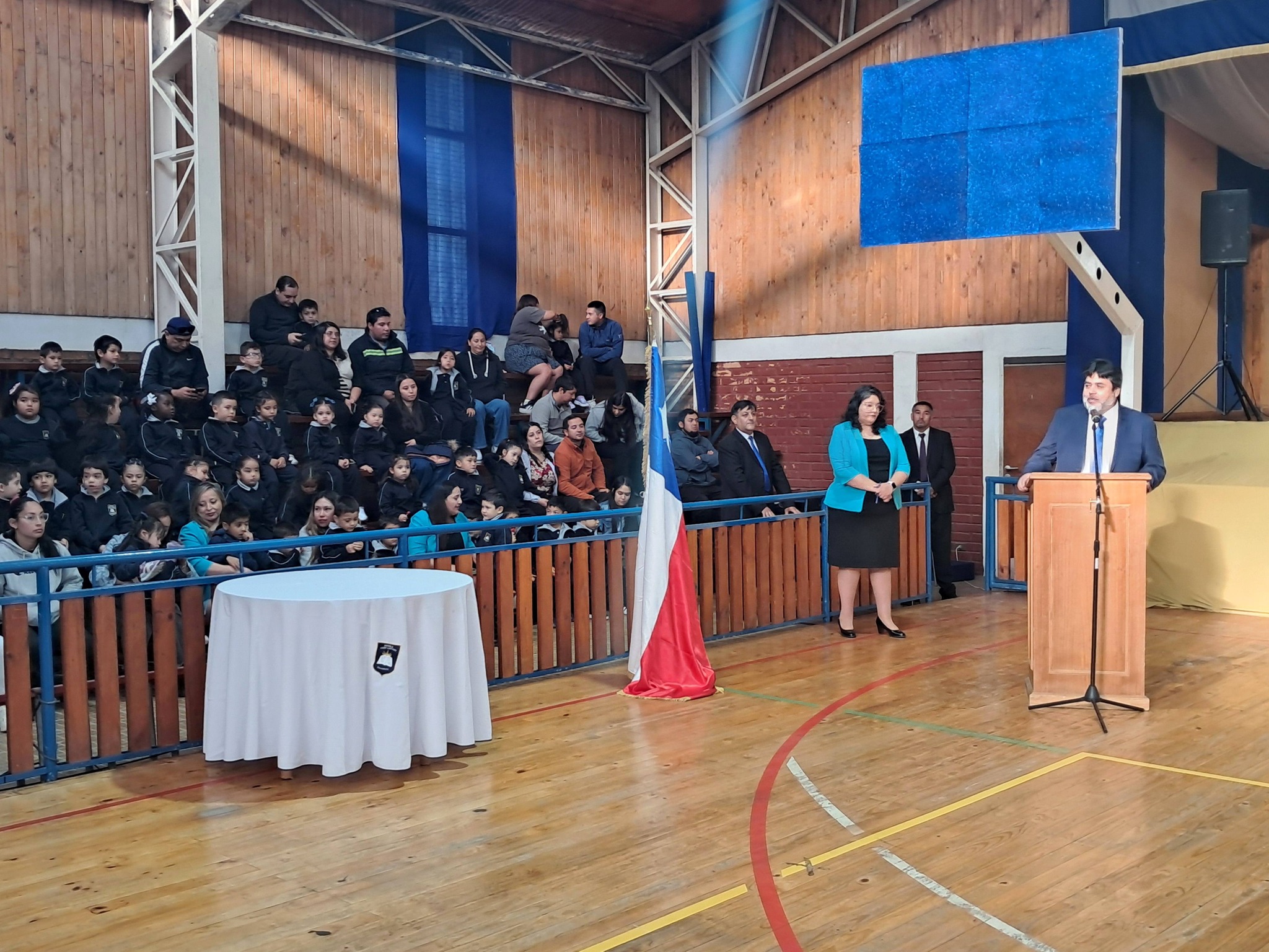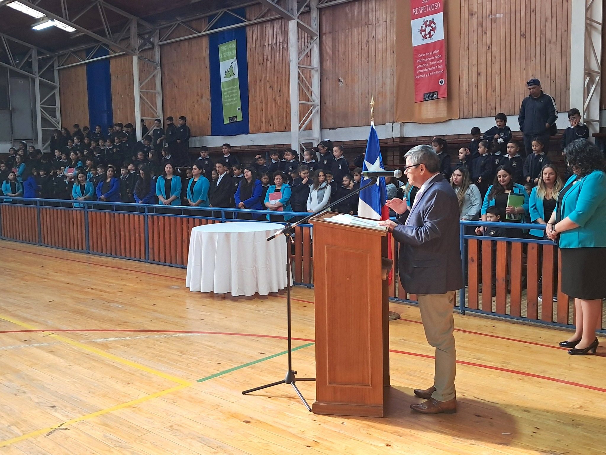 Luego les invitaron al acto oficial en el gimnasio del establecimiento, donde también participaron los concejales Luis Díaz y Daniela Villaseca, procediéndose allí a la entrega de libros de clases a docentes y equipos de aula, además de la reflexión y bendición del pastor Jaime Fuentealba, de la Iglesia Metodista Pentecostal de Chile.