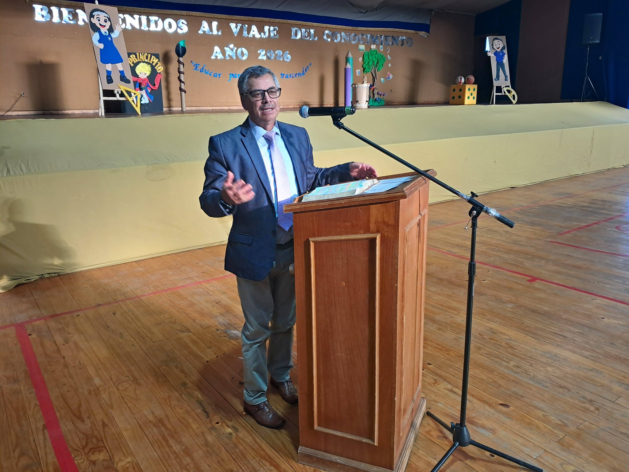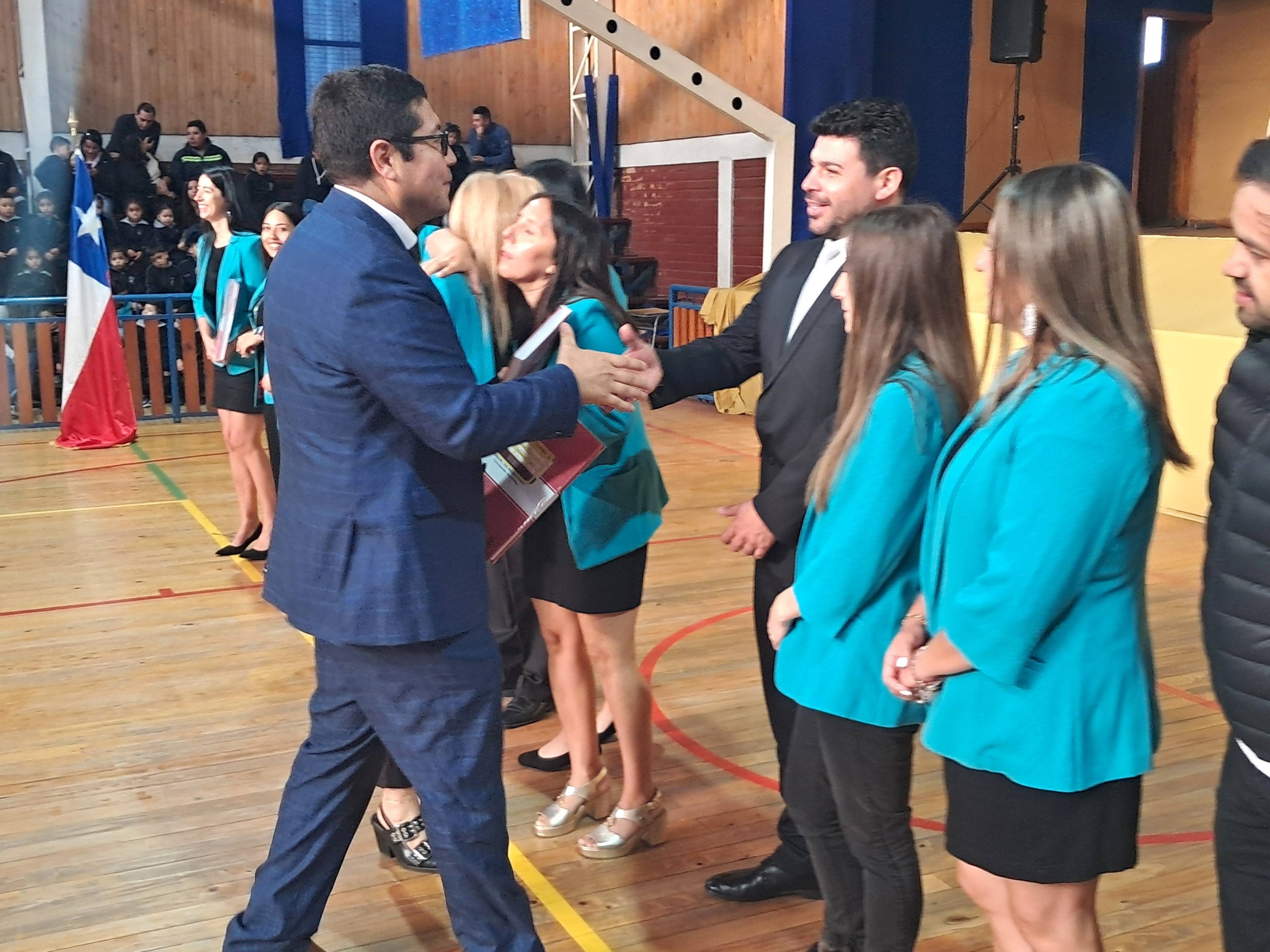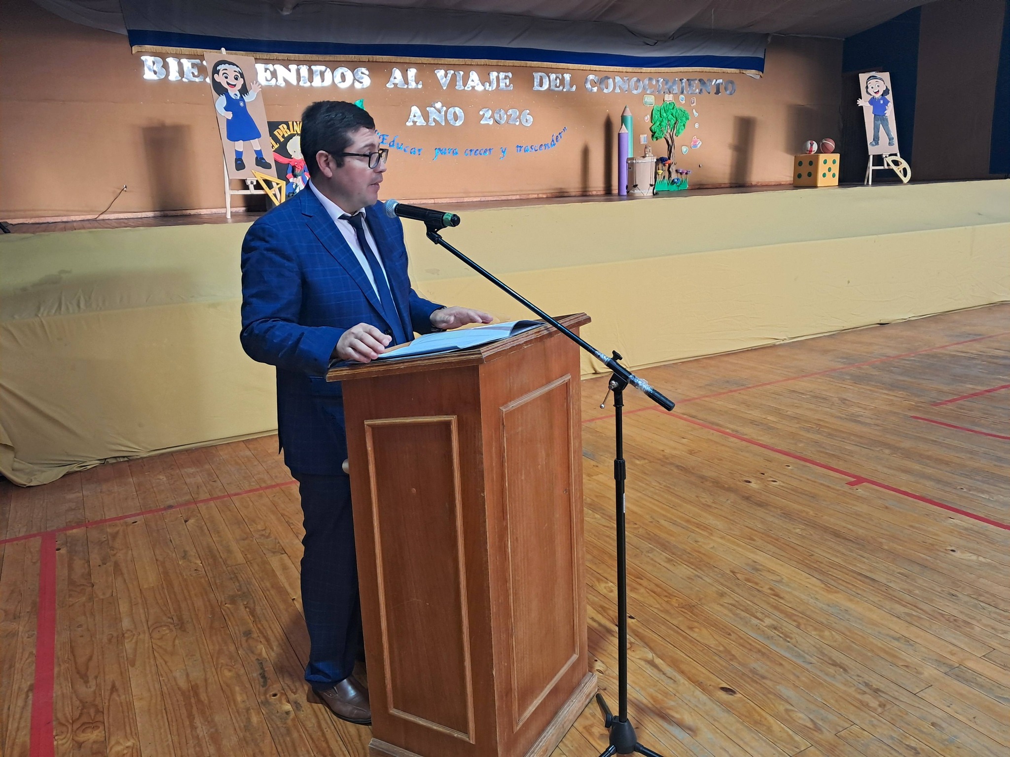 Luego les invitaron al acto oficial en el gimnasio del establecimiento, donde también participaron los concejales Luis Díaz y Daniela Villaseca, procediéndose allí a la entrega de libros de clases a docentes y equipos de aula, además de la reflexión y bendición del pastor Jaime Fuentealba, de la Iglesia Metodista Pentecostal de Chile.