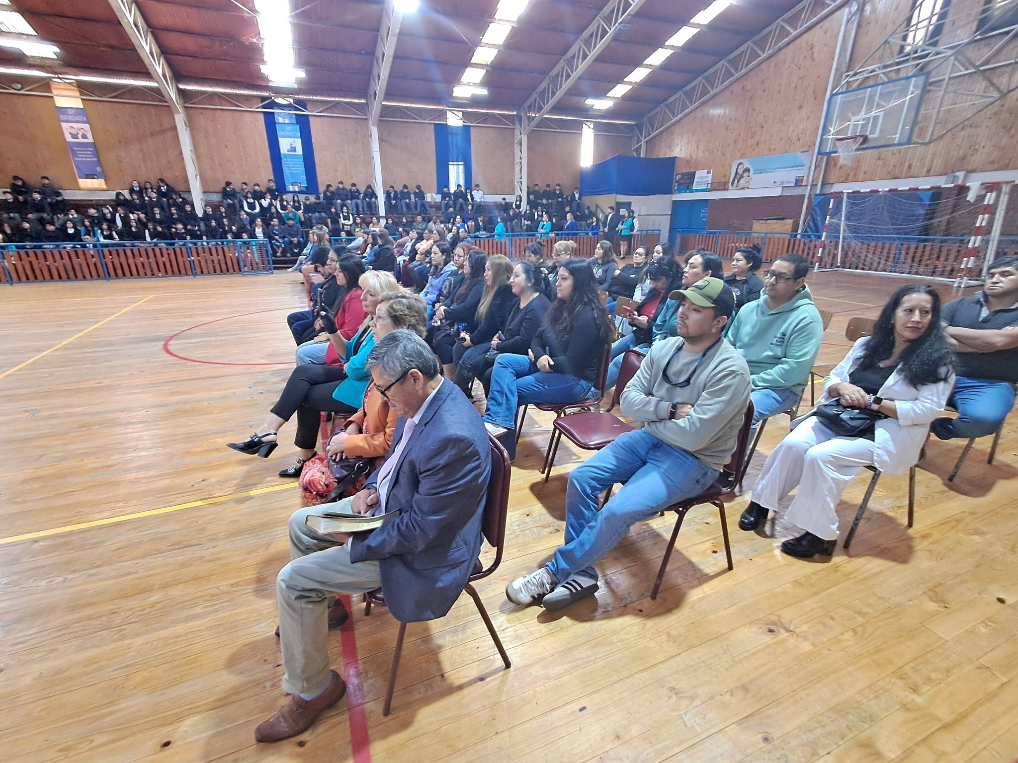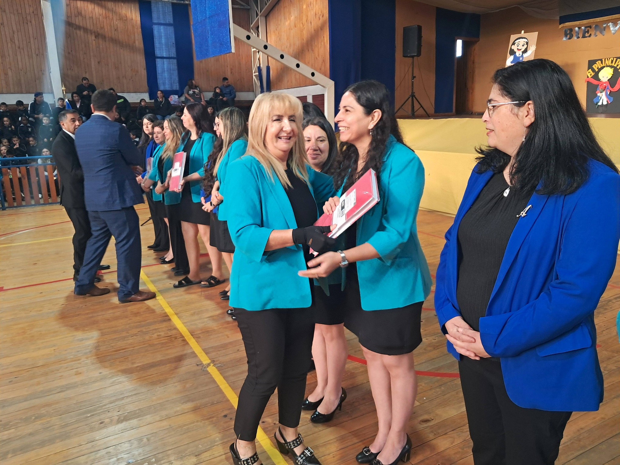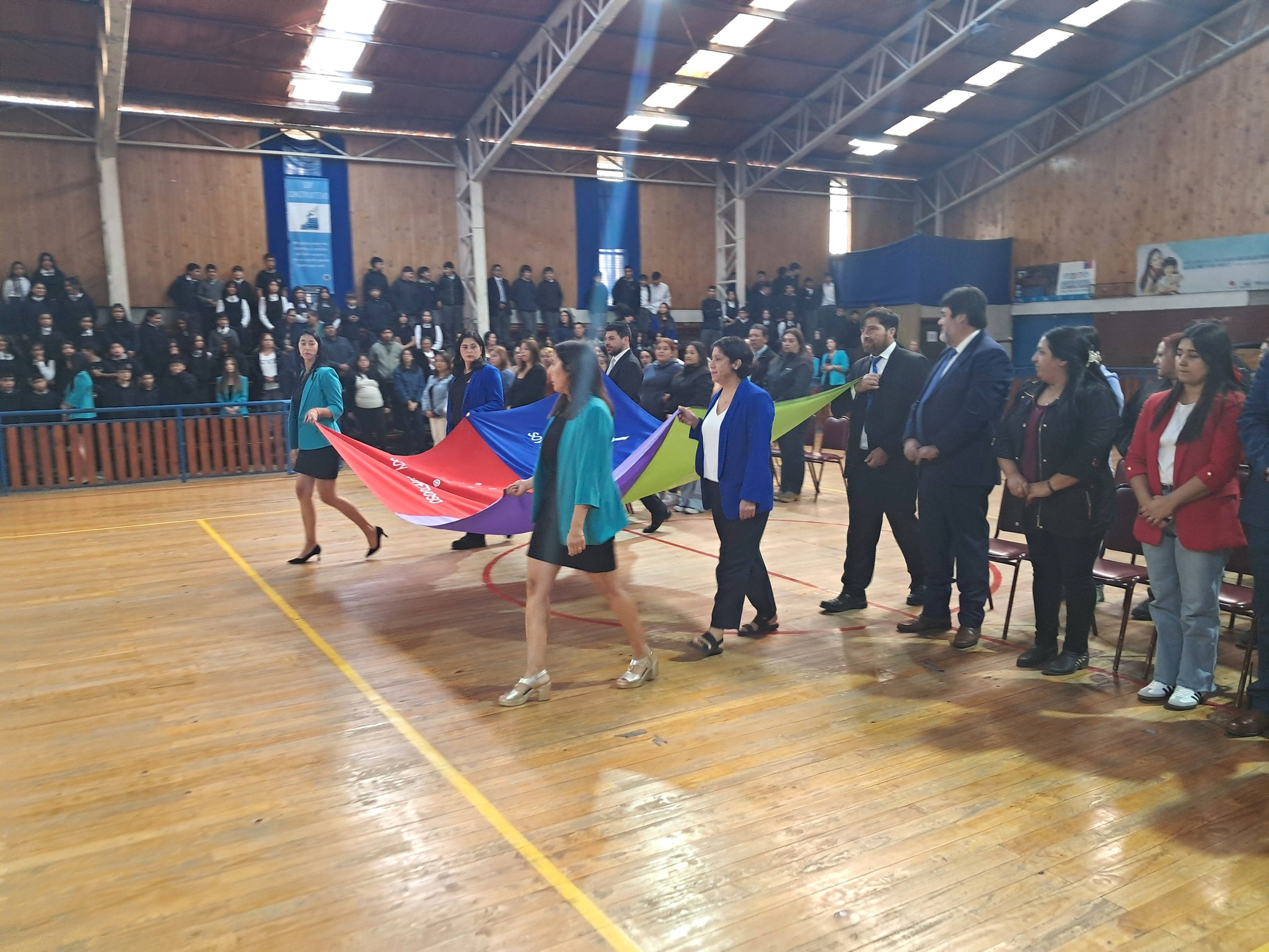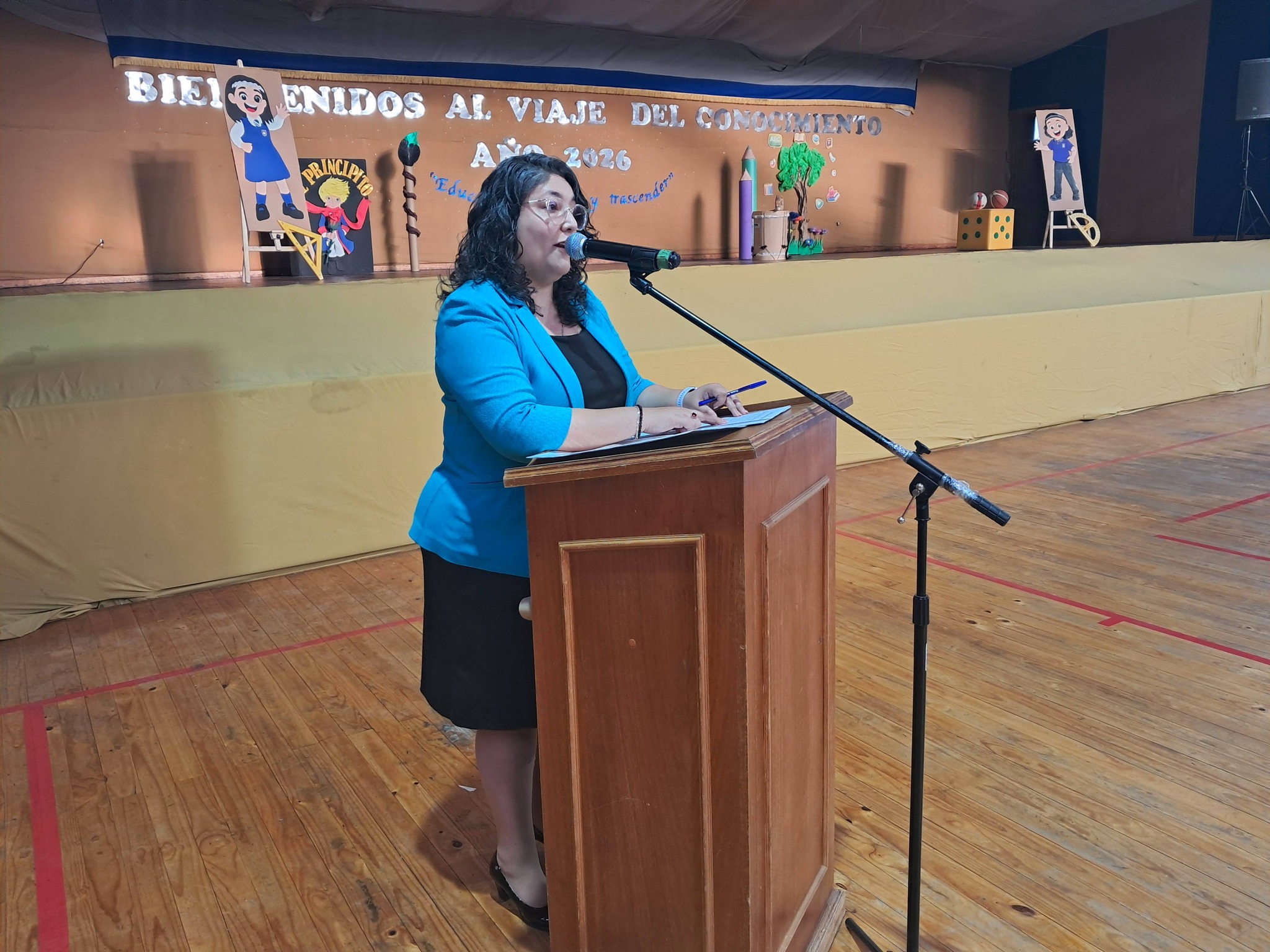 Luego les invitaron al acto oficial en el gimnasio del establecimiento, donde también participaron los concejales Luis Díaz y Daniela Villaseca, procediéndose allí a la entrega de libros de clases a docentes y equipos de aula, además de la reflexión y bendición del pastor Jaime Fuentealba, de la Iglesia Metodista Pentecostal de Chile.
