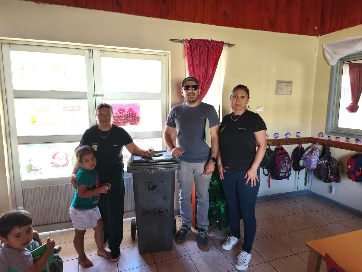 Como parte de su compromiso con la educación ambiental desde temprana edad, la Municipalidad de Nacimiento realizó la entrega de contenedores de reciclaje a distintos establecimientos a través de su Programa de Medioambiente.