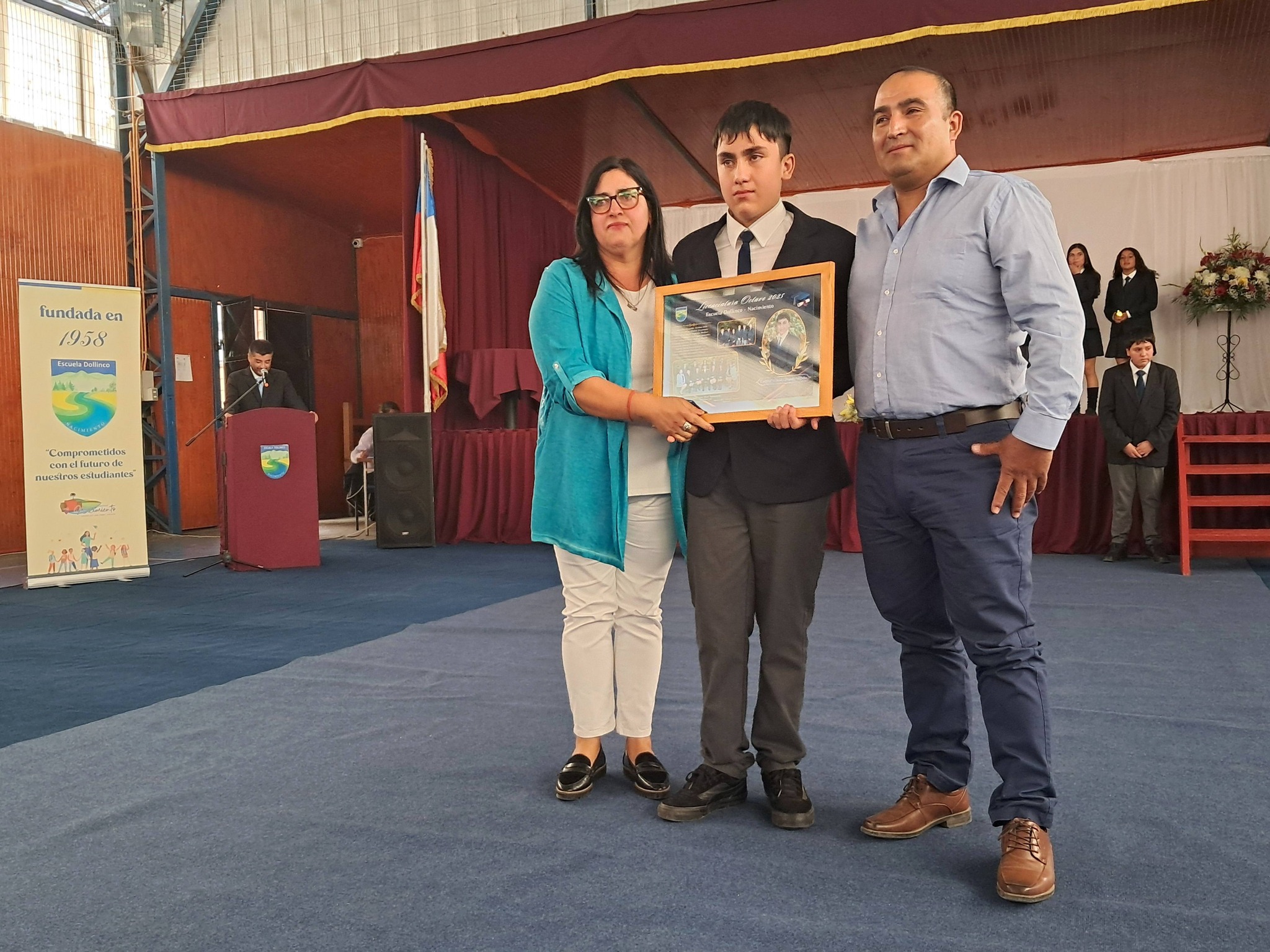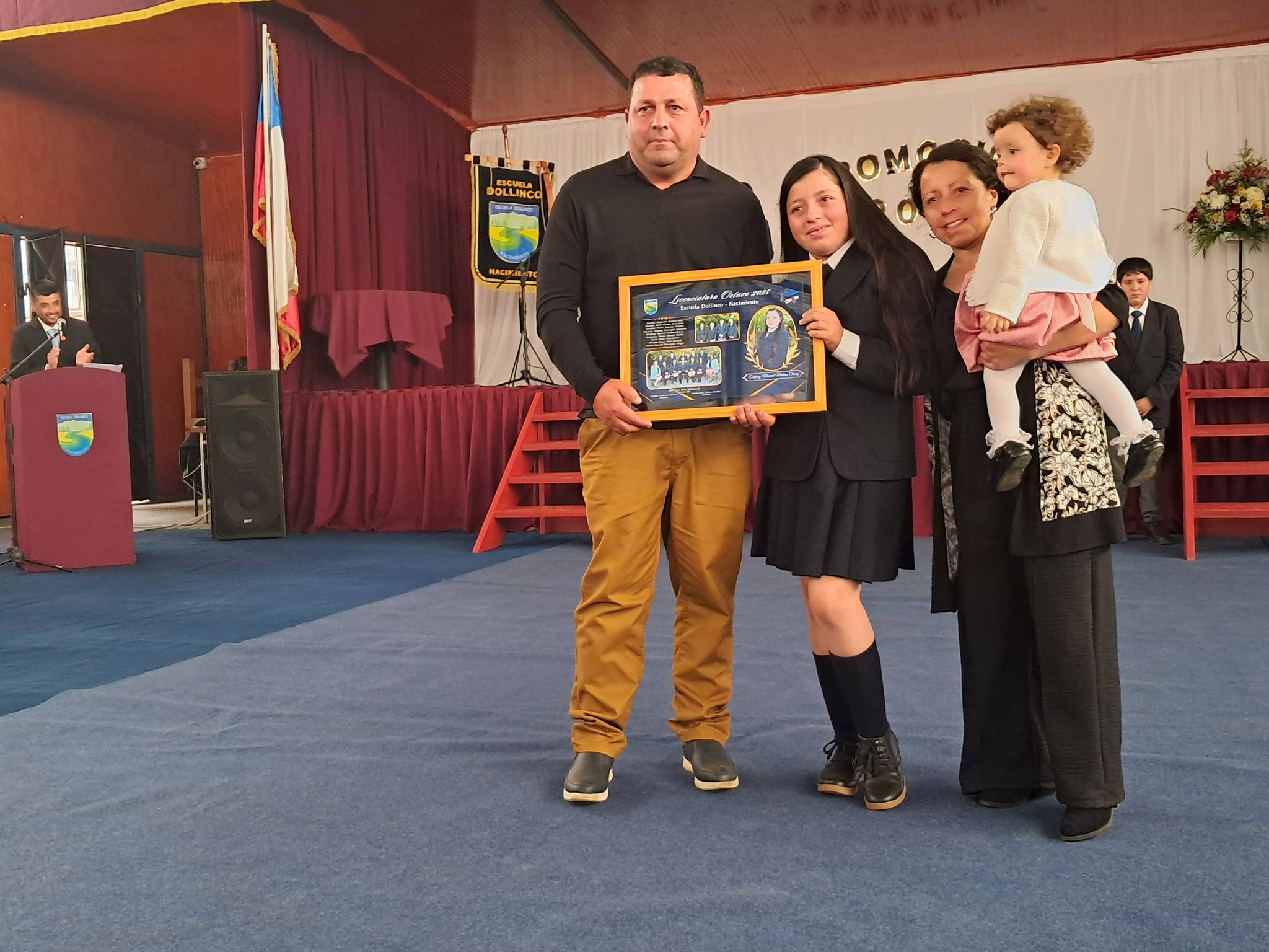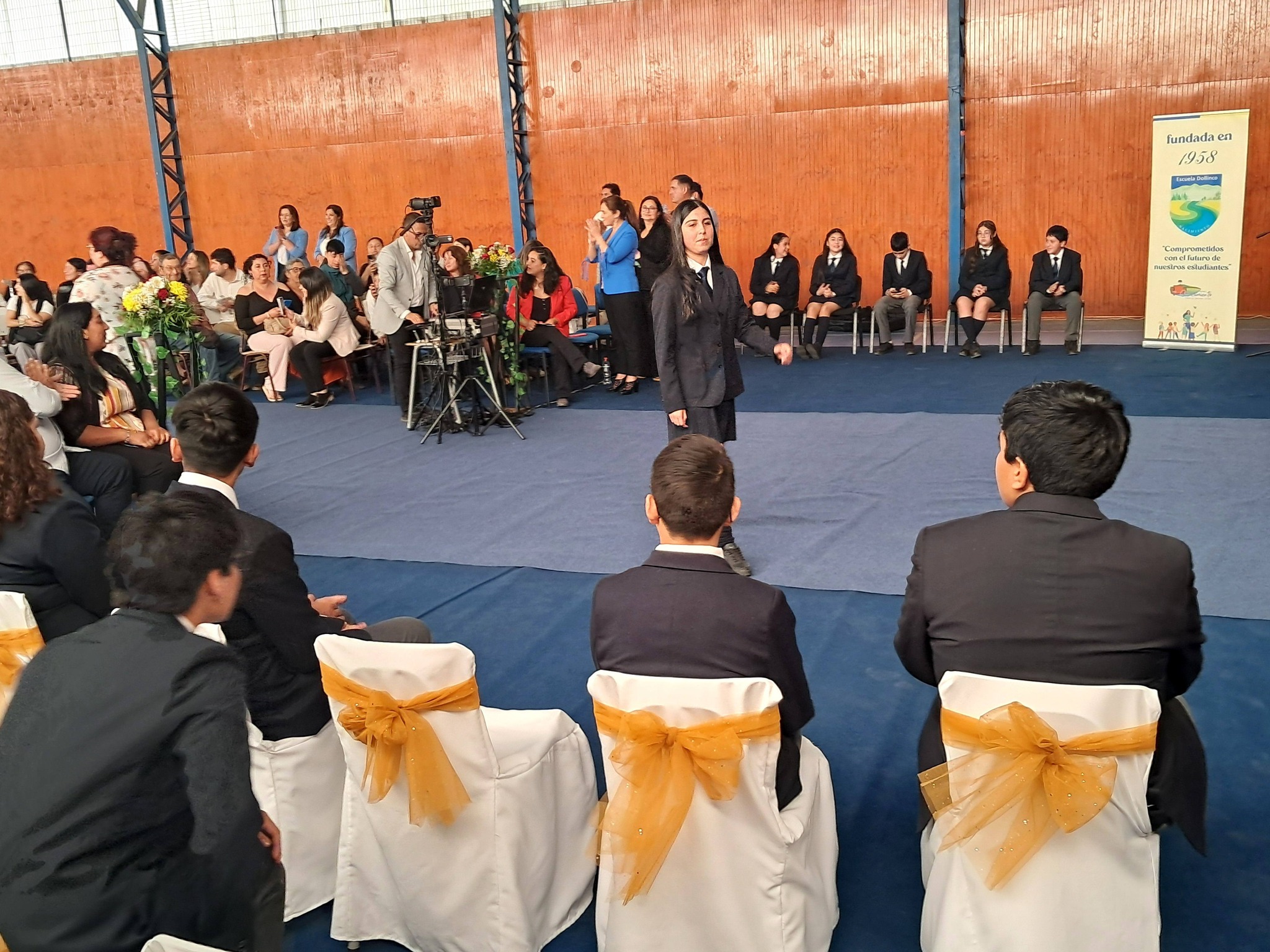 Además, se otorgaron galardones a los y las estudiantes más destacados, entre ellos el Premio al Mejor Rendimiento Académico que recayó en Estefany Medina Chávez, sumándose a esto el cambio de estandarte, una presentación artística y los sentidos mensajes de autoridades y representantes de docentes, apoderados y egresados, la entrega de un obsequio para la escuela y, finalmente, el rito de la “última lista”.