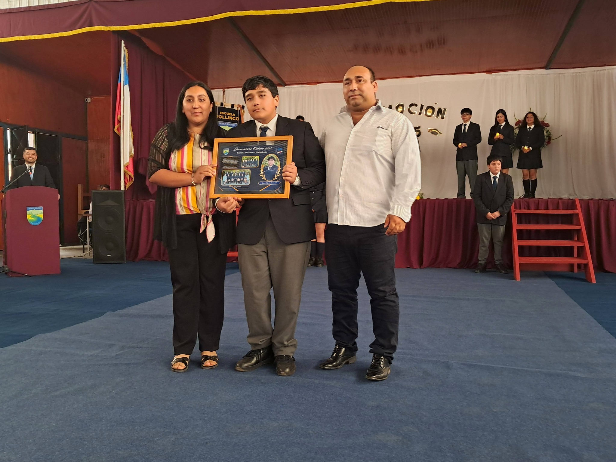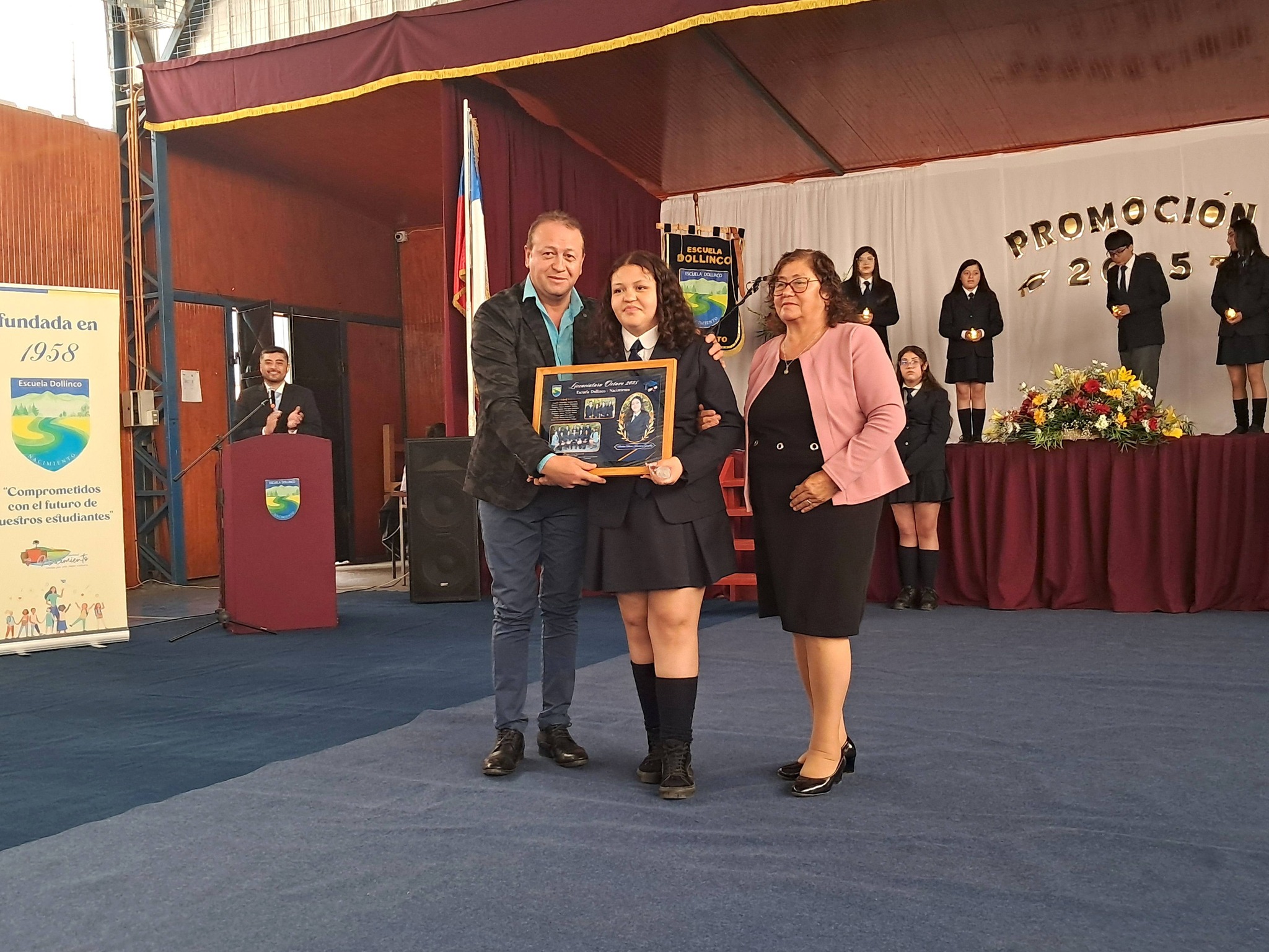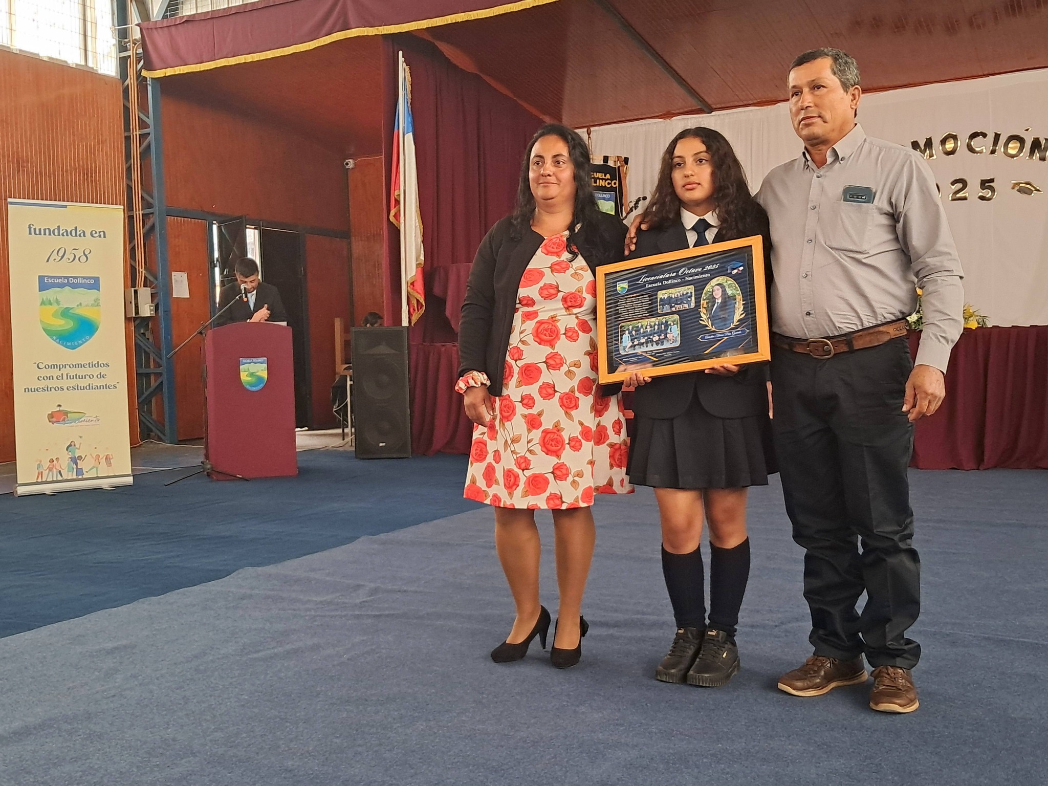 Además, se otorgaron galardones a los y las estudiantes más destacados, entre ellos el Premio al Mejor Rendimiento Académico que recayó en Estefany Medina Chávez, sumándose a esto el cambio de estandarte, una presentación artística y los sentidos mensajes de autoridades y representantes de docentes, apoderados y egresados, la entrega de un obsequio para la escuela y, finalmente, el rito de la “última lista”.