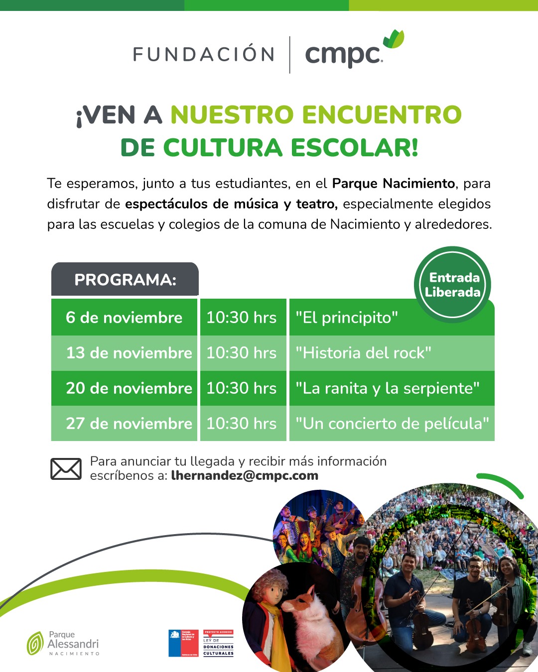 Compartimos una invitación especial de Fundación CMPC para las escuelas y los colegios de Nacimiento y alrededores.