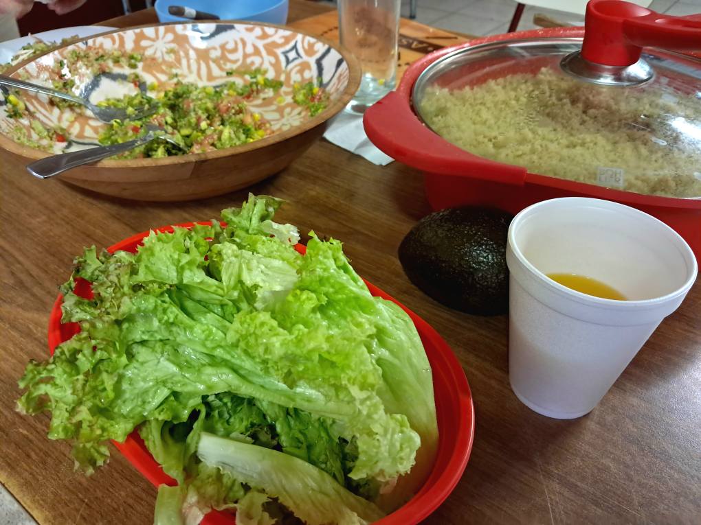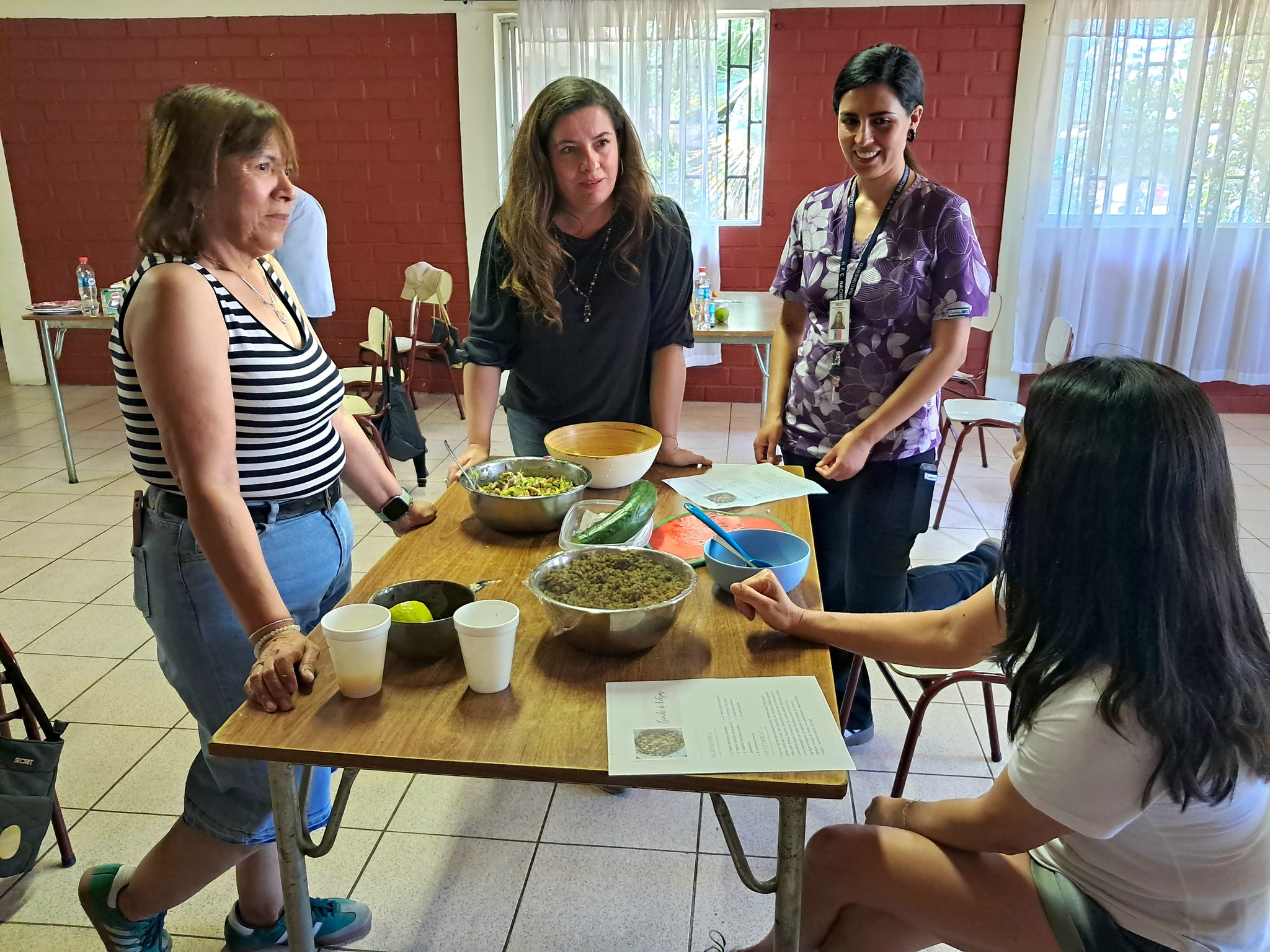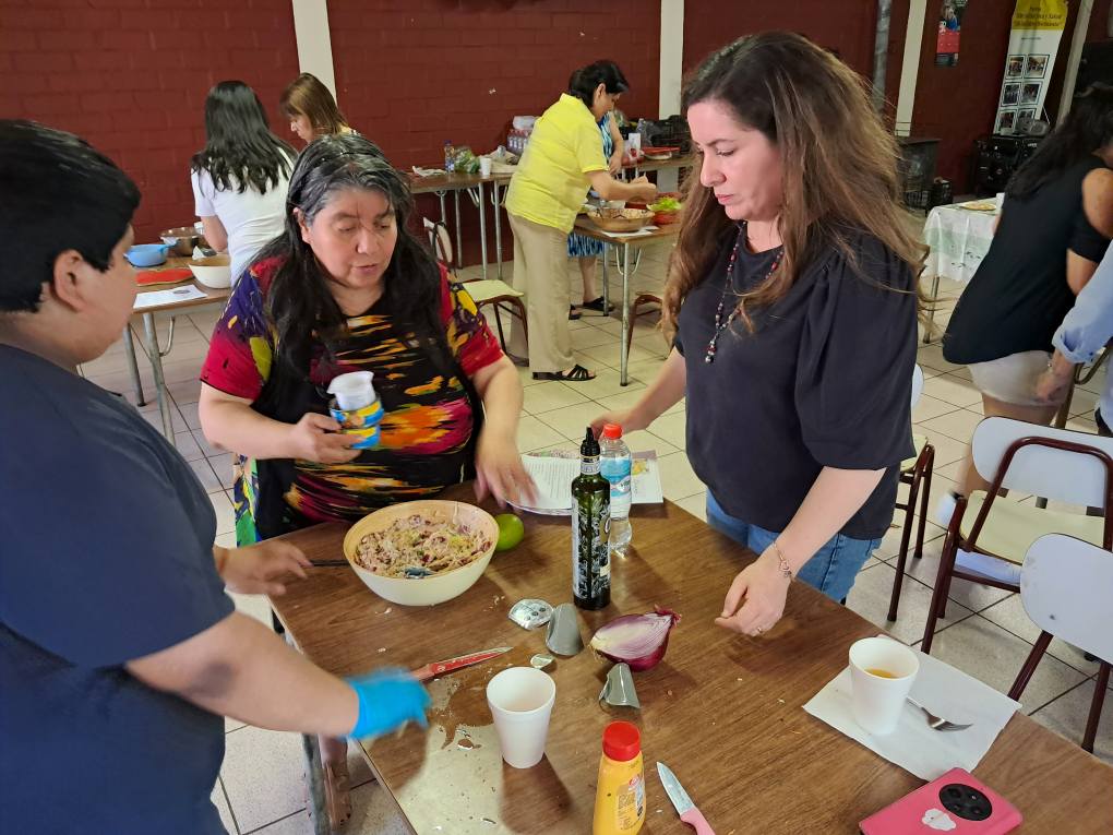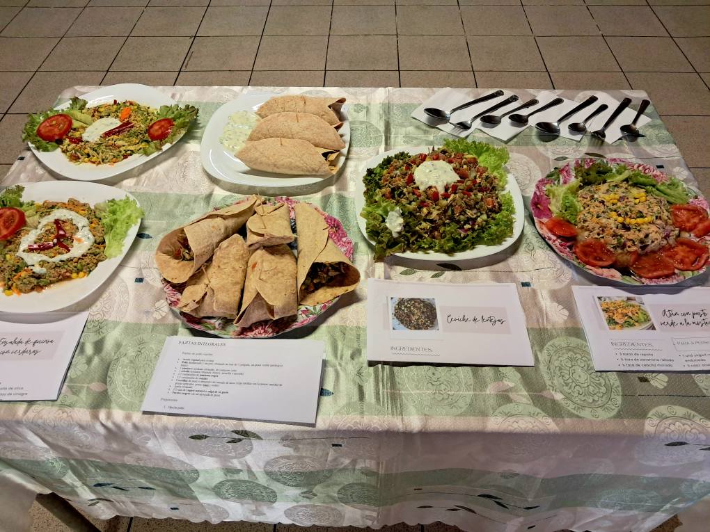 A solicitud de los mismos vecinos y vecinas, esta vez la jornada se orientó a la preparación de almuerzos saludables, con la participación de adolescentes y hasta adultos mayores, quienes trabajaron en base a recetas tales como “Fajitas integrales”, “Ensalada de quínoa con verduras”, “Ceviche de lentejas” y “Atún con pasto verde a la mostaza”.