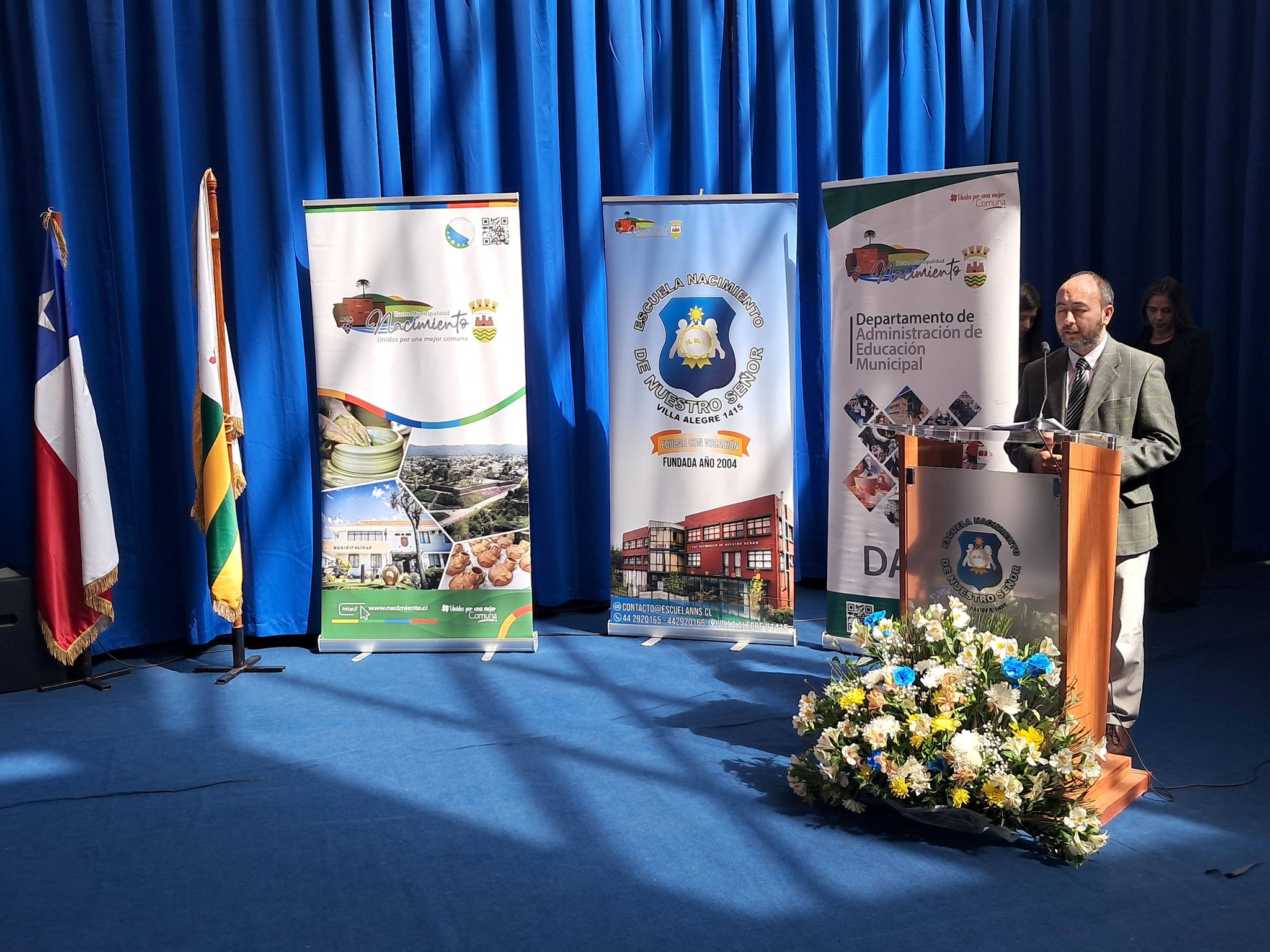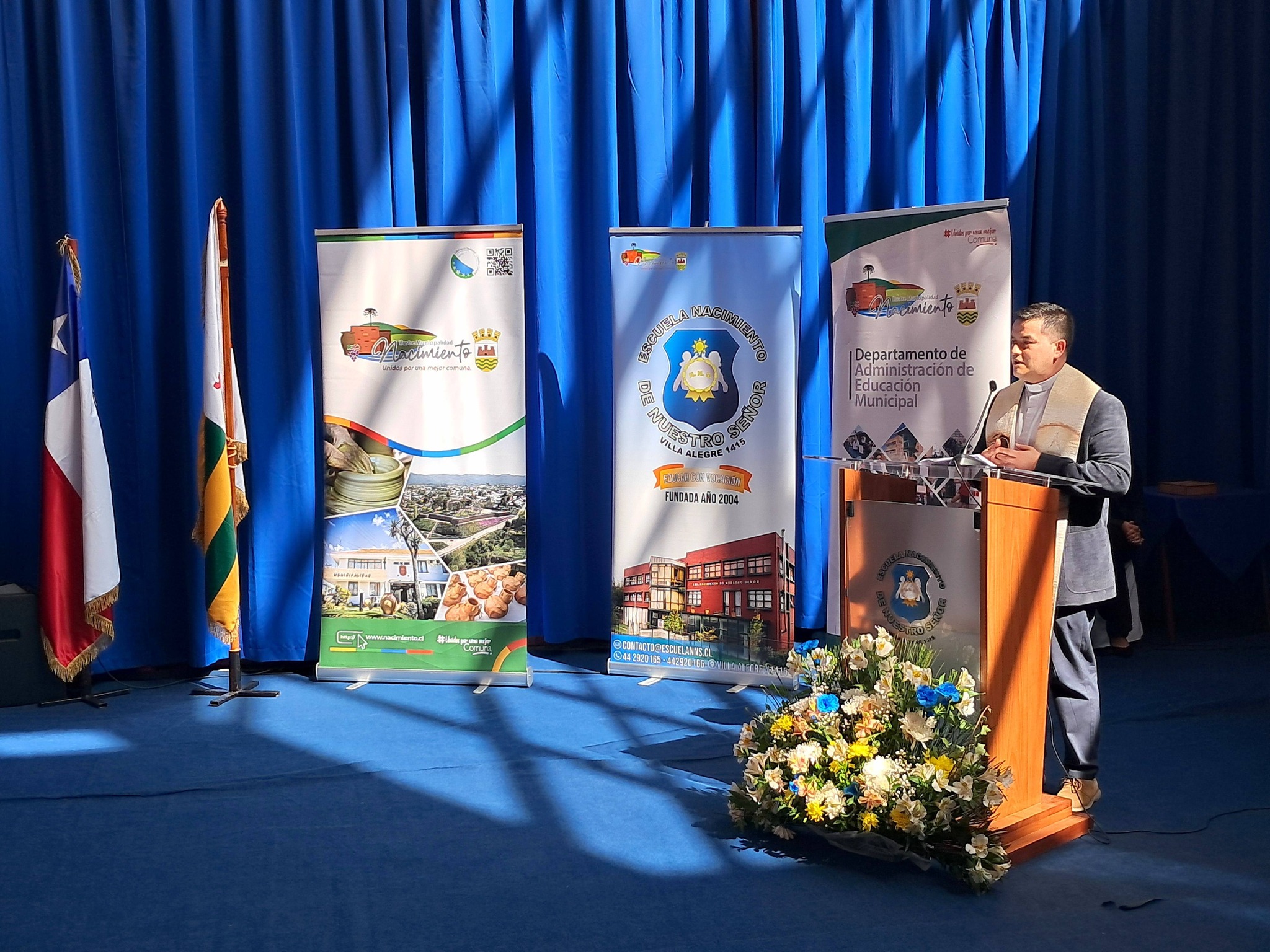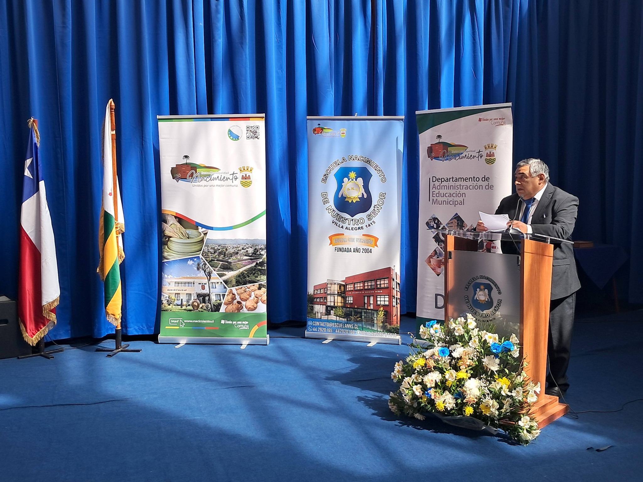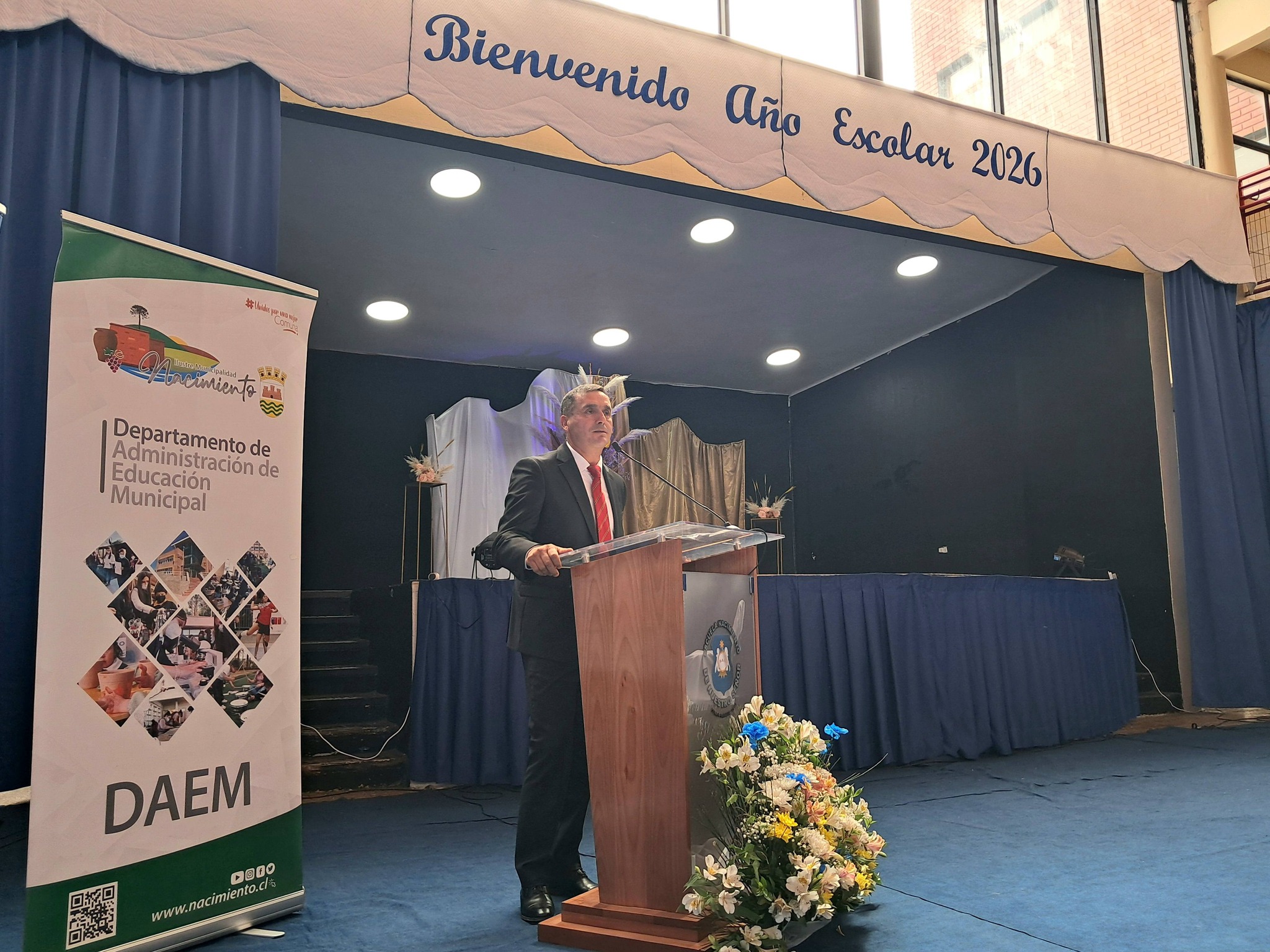 Al mediodía de este martes, 24 de marzo, se efectuó el acto comunal de inauguración del año escolar 2026, organizado por nuestro municipio a través del DAEM y en conjunto con la Escuela Nacimiento de Nuestro Señor, que por primera vez era sede de esta tradicional ceremonia.