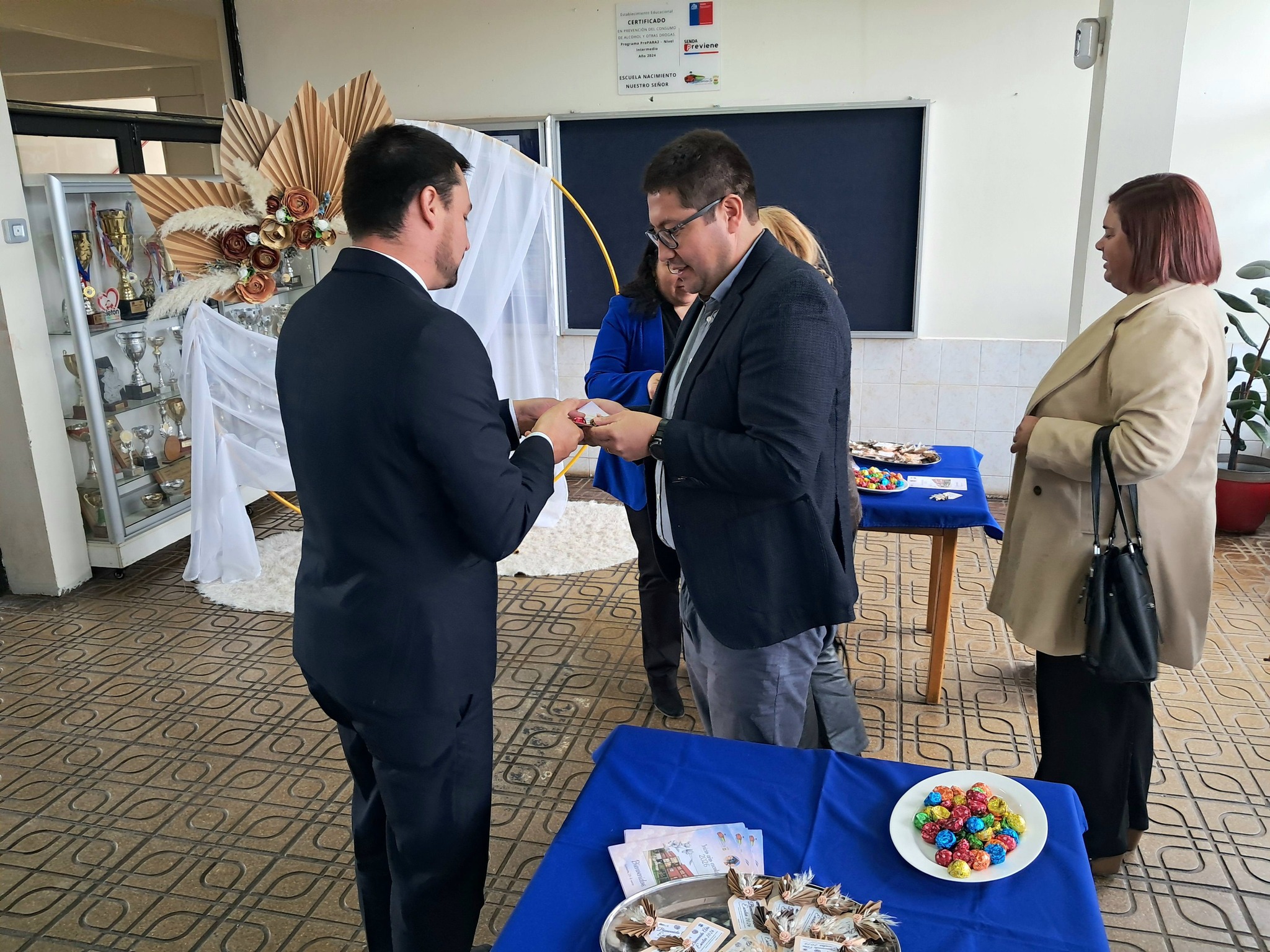 En la ocasión se entregó un reconocimiento al docente e inspector general del Liceo Municipal, Jorge Becerra Gutiérrez, cuya carrera laboral culminó en febrero pasado tras 41 años al servicio de la educación pública. A esto se sumó la bendición del pastor Dionisio Valenzuela Gamonal y del presbítero Álvaro Martínez Leal, más la presentación artística de la Banda NNS y el grupo Danzares, ambos de la escuela anfitriona.