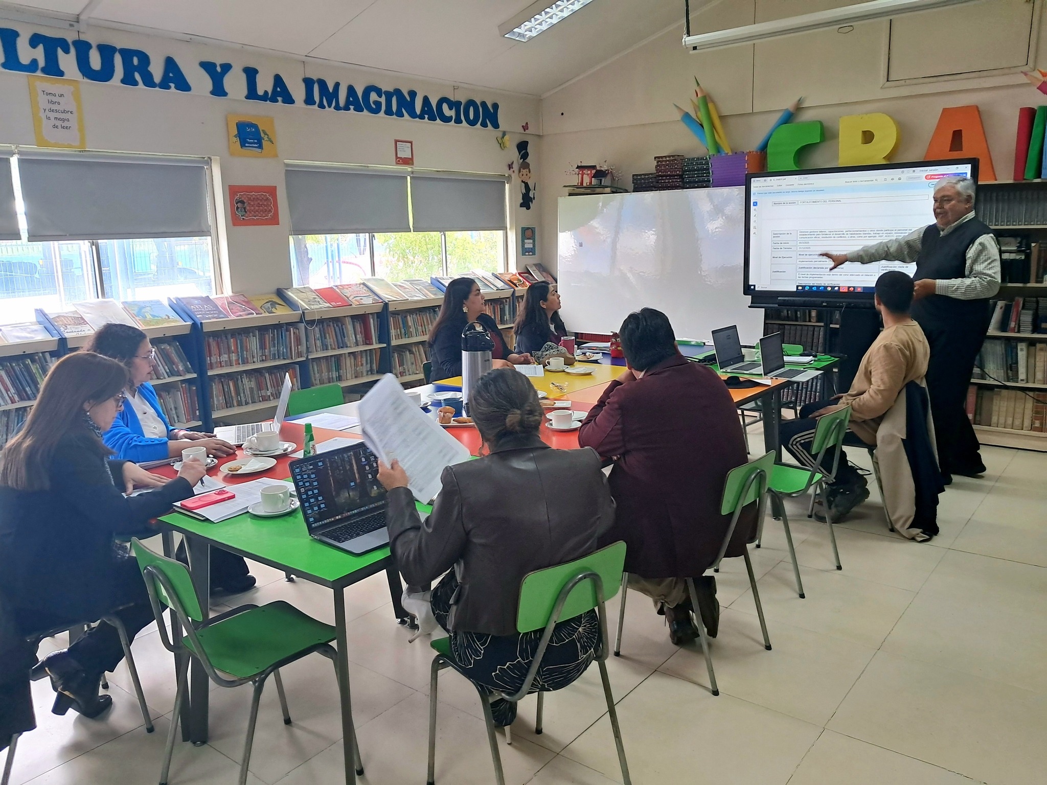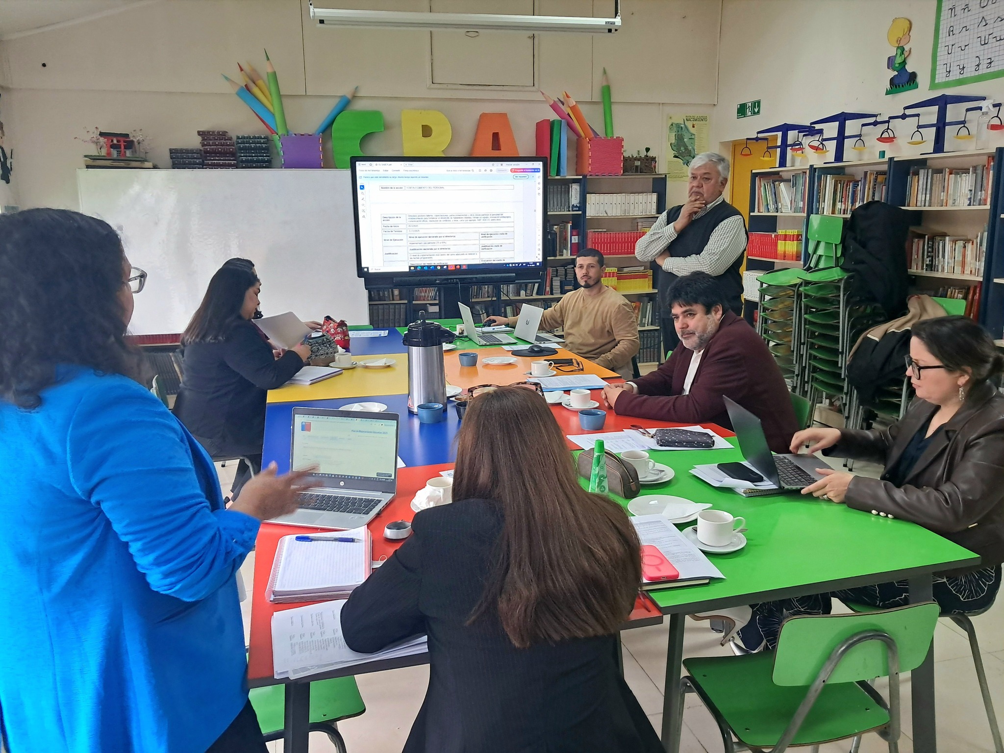 Tal como se contempla en las distintas unidades educativas, en el segundo de estos establecimientos se revisó la ejecución del PME con la participación de integrantes del equipo directivo y técnico, además de representantes de los docentes y asistentes de la educación.